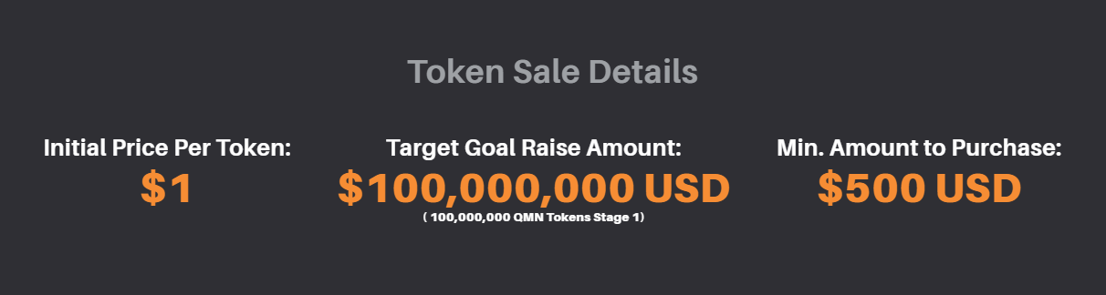 Detail Penjualan Token untuk StealthCrypto memiliki Harga Awal Per Token: untuk $ 1 yang diproyeksikan pada Target Peningkatan Sasaran Jumlah: $ 100.000.000 USD (100.000.000 QMN Token Tahap 1). Demikianlah Min. Jumlah Pembelian adalah: $ 500 USD melalui manfaat dari nilai marjinal yang ditetapkan, dll.